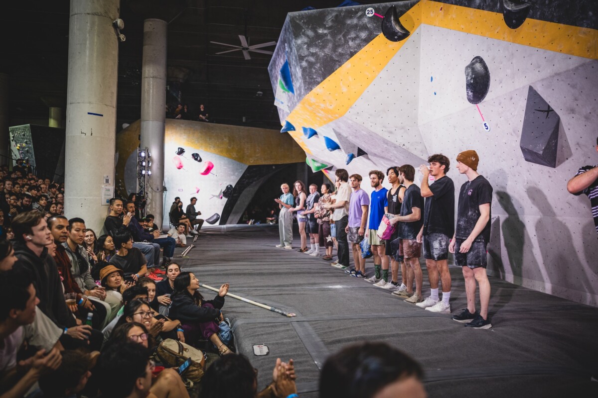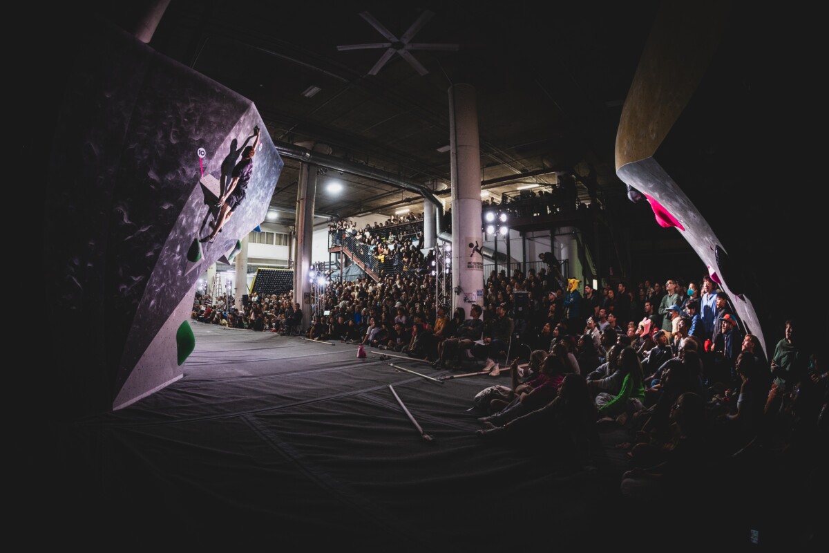 The final throwdown had the top 6 Open competitors from each category—Women, Men, and Non-binary— climbing for the chance to win the crown and a portion of the cash pot. The Open Finals Round on November 2nd began with a 2-minute preview of the problems. Then the competitors were led back to isolation before coming out to attempt each problem in turn.