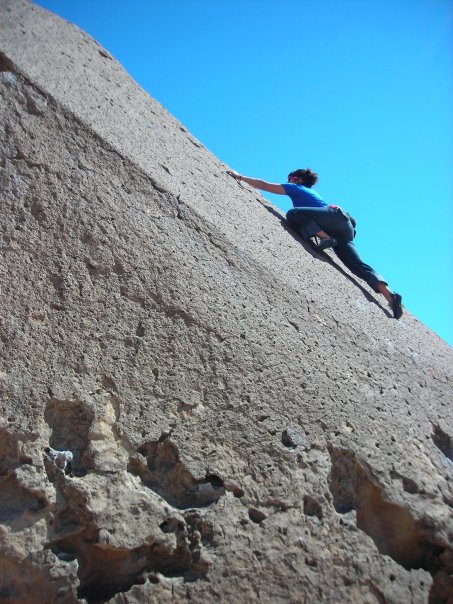 Ortega climbing Heavenly Path at the Happy Boulders in Bishop